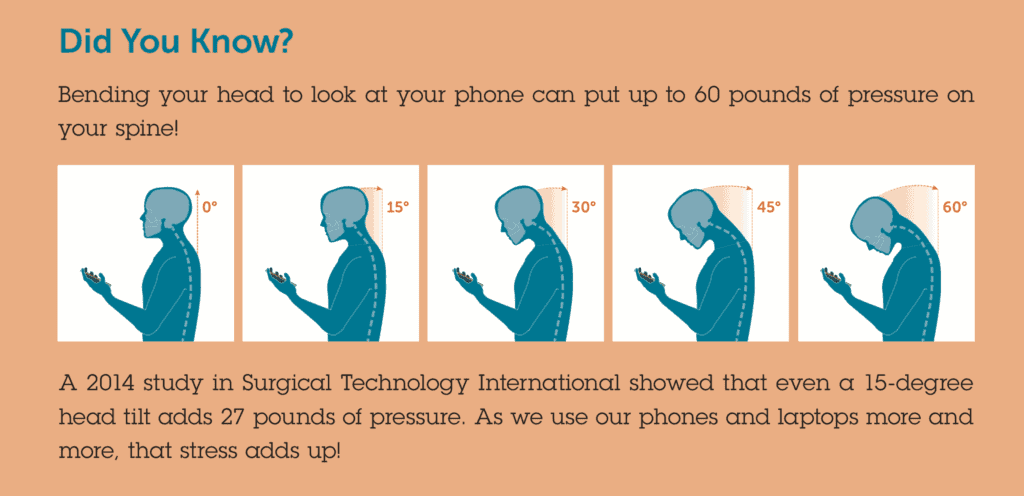 People are spending more and more time looking down at smartphones and tablets every year, and strain injuries in the hand, wrist, forearm and neck are on the rise. This is commonly referred to as “text neck”.