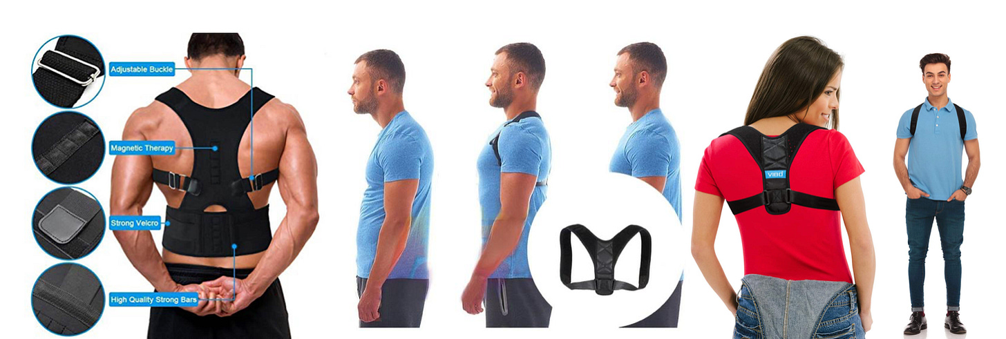 You might have seen these devices on a television ad or on Amazon.ca. These are straps that claim to help correct posture if worn throughout the day. Here are some examples: