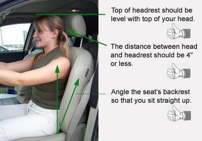 Your head should not be more than four inches from the headrest, otherwise in the event of a collision your spine could be injured