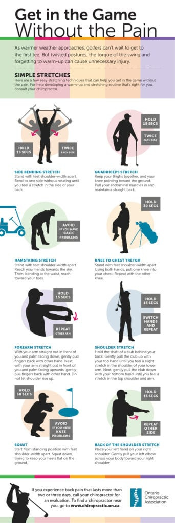 When you consider the spinal rotation that goes into a golf swing and the fact that the speed of the club can reach 160 km/hour, it’s easy to understand that golf puts significant stress on your body.