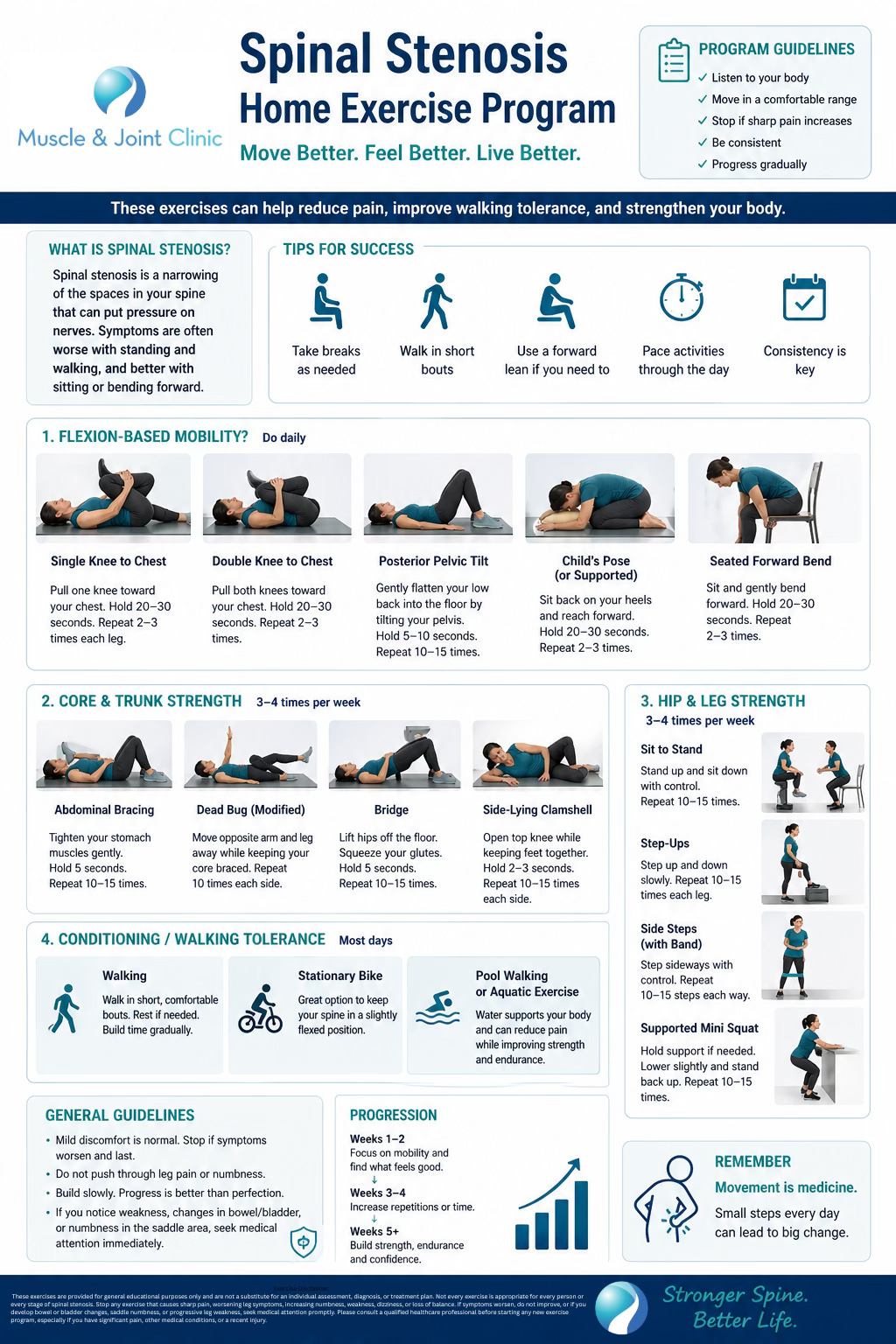 Often, yes. One of the common fears around spinal stenosis is that it only gets worse. The truth is more nuanced. Lumbar spinal stenosis is degenerative, but symptoms do not always deteriorate in a straight line. Some people worsen, many remain stable, and some improve with nonsurgical treatment (Katz et al., 2022). That matters, because it supports the idea that a well-designed rehabilitation plan is not just “delaying the inevitable.” For many patients, it is a meaningful treatment path in its own right.