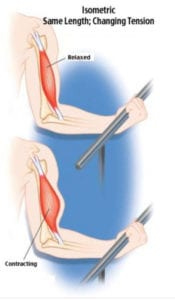 Isometric Exercises: Isometric exercises is where the joint does not move and the muscle does not lengthen. The joint stays still and there is no movement, for example: