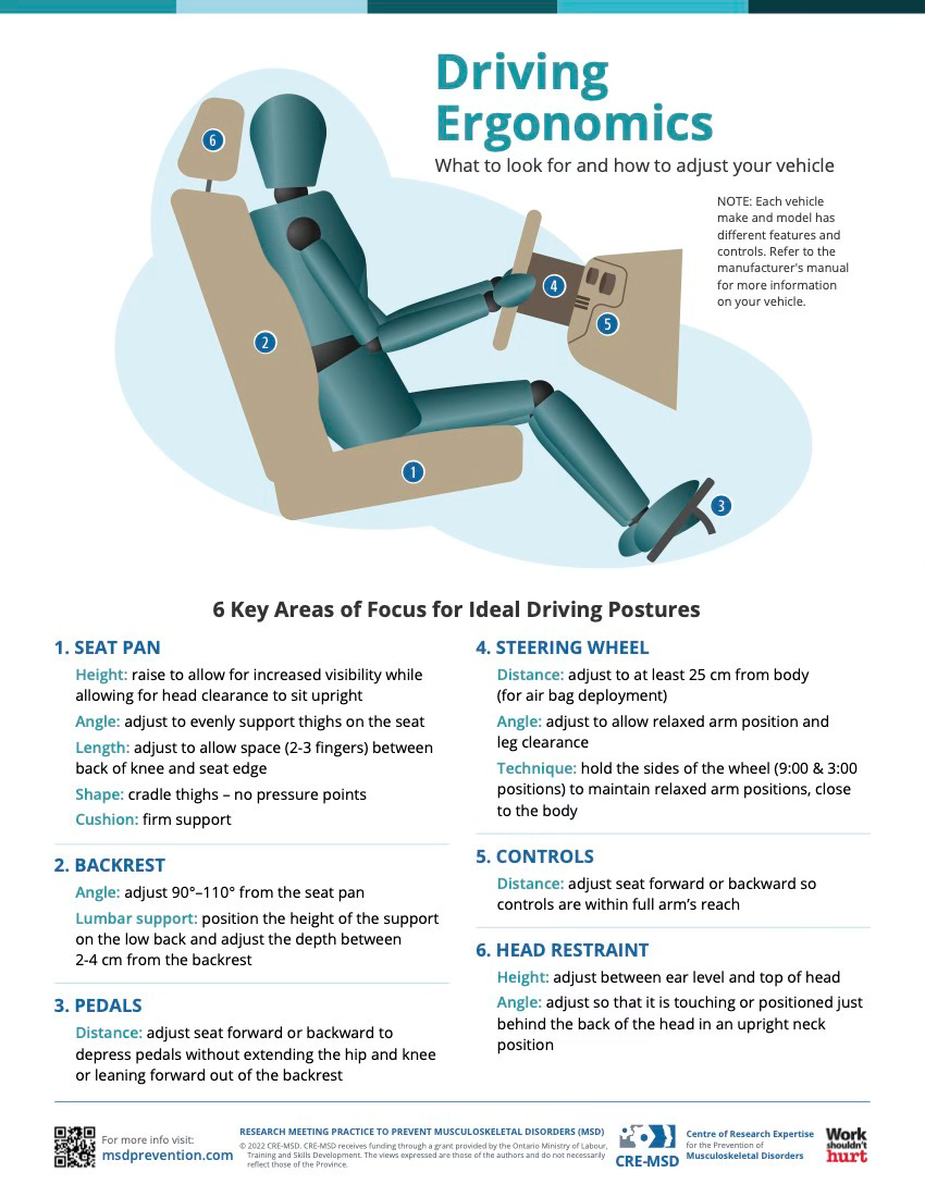 Centre of Research Expertise for the Prevention of Musculoskeletal Disorders. (2022). Driving ergonomics: What to look for and how to adjust your vehicle.